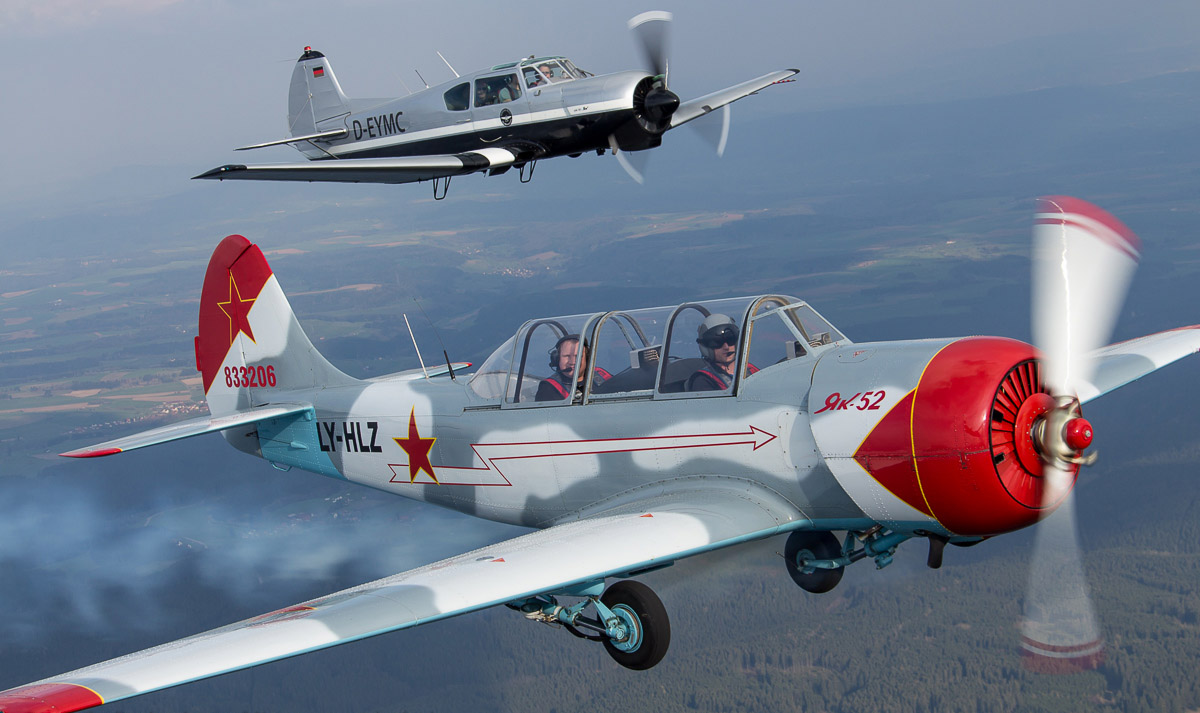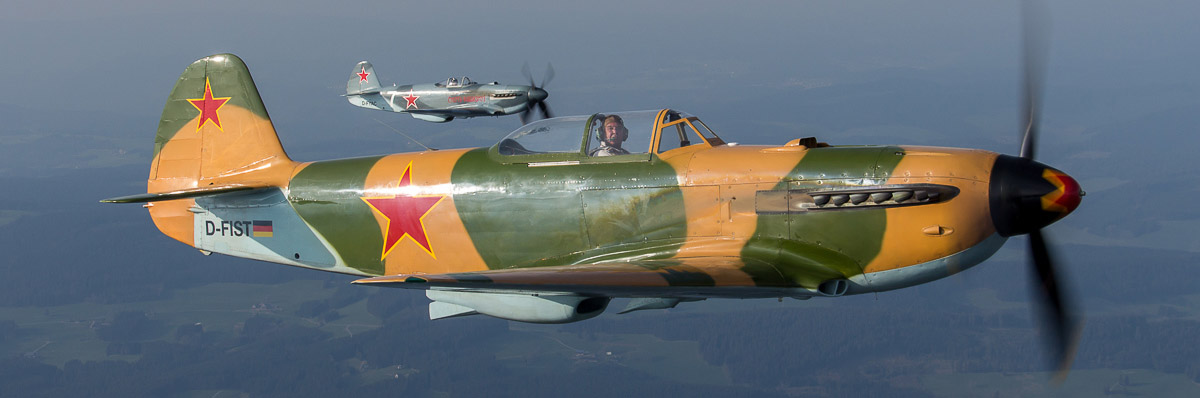 Am 12.04.2014 hatten wir wieder in Bremgarten die Gelegenheit, einige Warbirds Air2Air in ihrer "natürlichen" Umgebung zu fotografieren. Diesmal standen vornehmlich Flugzeuge aus dem Hause Jakowlew auf dem Plan.
