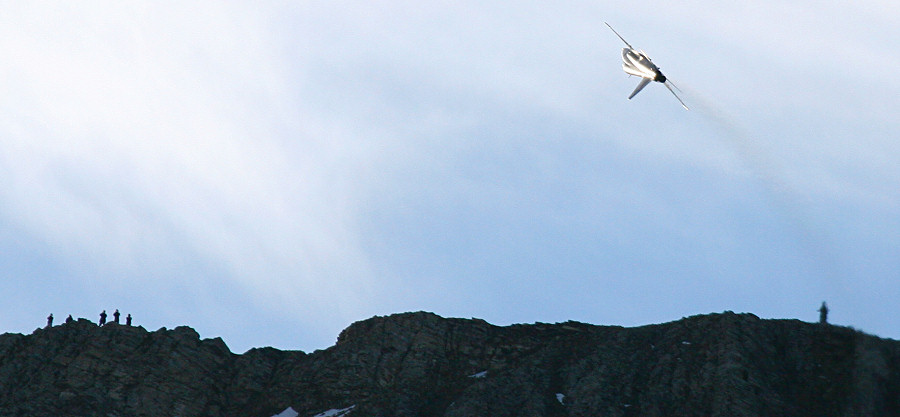 Obwohl das Grundprogramm seit Jahren stabil ist, gab es dennoch einige Neuerungen. So wurde neben einer sehenswerten Rettungsdemonstration der Schweizer REGA erstmalig ein Luftsack-Schiessen demonstriert. Zwei F-5E der Patrouille Suisse verfügten über eine Spezialvorrichtung zum Aus- und Einfahren eines Luftsacks, der zwei F/A-18 als Ziel diente. Während bei den bisherigen Schiessübungen drei Erdziele verwendet wurden und sich die Flugzeuge und damit auch die Geschosse auf definierten und gesicherten Flugbahnen bewegten, bestrichen beim Luftsackschiessen die Geschosse die gesamte Kuppe der gegenüberliegenden Felswand. Das ist an sich kein Problem, da es sich um ein militärisches Sperrgebiet handelt. Da aber das Axalp-Fliegerschiessen eine Gegenlicht-Veranstaltung ist, gibt es immer eine paar Risikobereite, denen ein perfektes Bild über die eigene Sicherheit geht. Und diesen Unbelehrbaren kamen die Geschosse, die für den Luftsack gedacht waren, etwas zu nahe. Es bleibt nur zu hoffen, das dieses Ereignis keine Auswirkung auf zukünftige Planungen der Schweizer Luftwaffe hat. Es wäre echt Schade, wenn diese in Europa einzigartige Veranstaltung wegen eine paar Ignoranten leiden müsste.