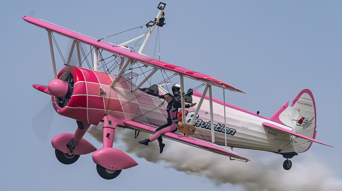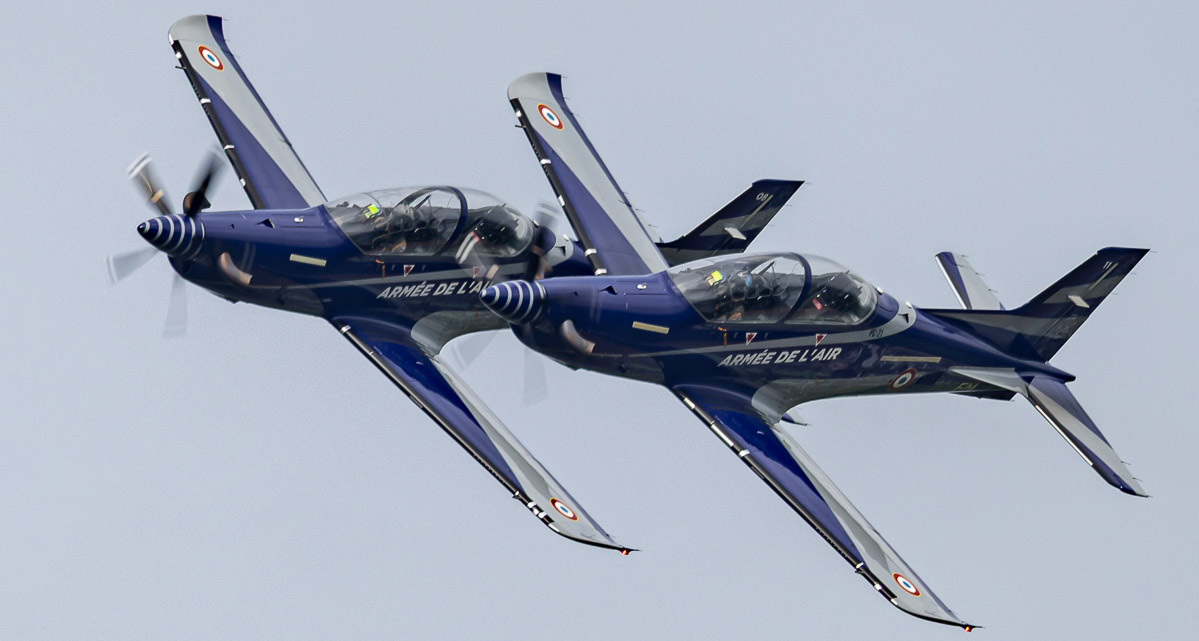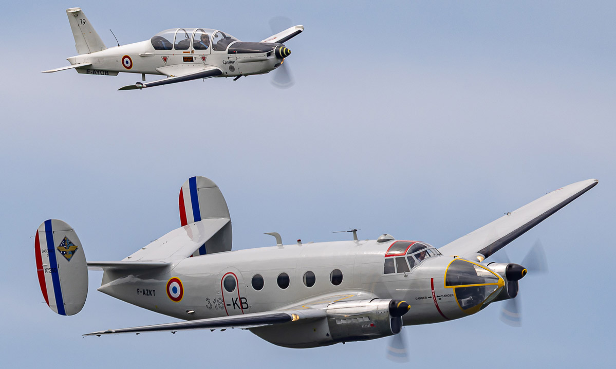 Nach diesem historischen Block folgten typische französiche Airshow-Elemente wie die Mustang X-Ray-Demo mit zwei Pilatus PC-21 Trainern, die Wingwalker-Demo von Danielle und Emiliano Del Buono auf ihrer Boeing-Stearman Model 75, die Formation der Dassault MD-311 Flamant mit zwei Socata TB-30 Epsilon, die Kunstflugdemo der Extra EA-330SC der französischen Luftwaffe und die steten Highlights französischer Airshows - die Patrouille de France und die Rafale-Demo.