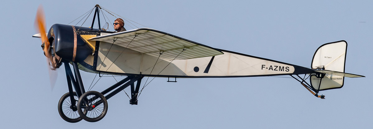 Das schlechte Wetter mit reichlich Wind erlaubte nur ein paar Startaufnahmen von Bücker 131 Jungmann und Stampe SV-4, die in den 20iger Jahren recht beliebt waren. Der Luftkampf im ersten Weltkrieg wurde wie in den Jahren davor eindrücklich mit Replikas von zwei Fokker Dr.1 und zwei Royal Aircraft Factory SE-5A nähergebracht, gefolgt von einer schönen Replik einer Caudron G3, dem Standard-Aufklärer der Franzosen im ersten Weltkrieg.