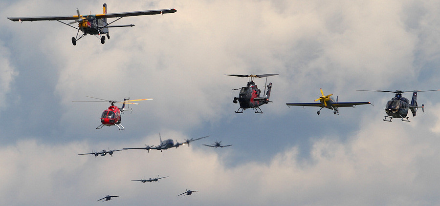 Display verschiebener Teams, wie der Patrouille Suisse, des Breitling Jet Teams, der Turkish Stars und der Wings of Storm aber auch die Solodisplays der holländische und belgische F-16, der tschechische Saab JAS-39 Gripen und der schweizer F/A-18 und Tiger Hunter begeisterten das Publikum.
