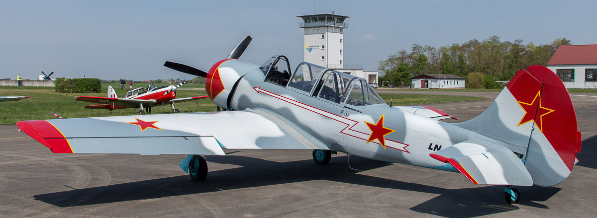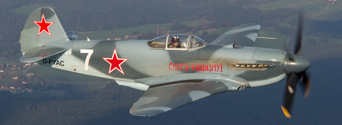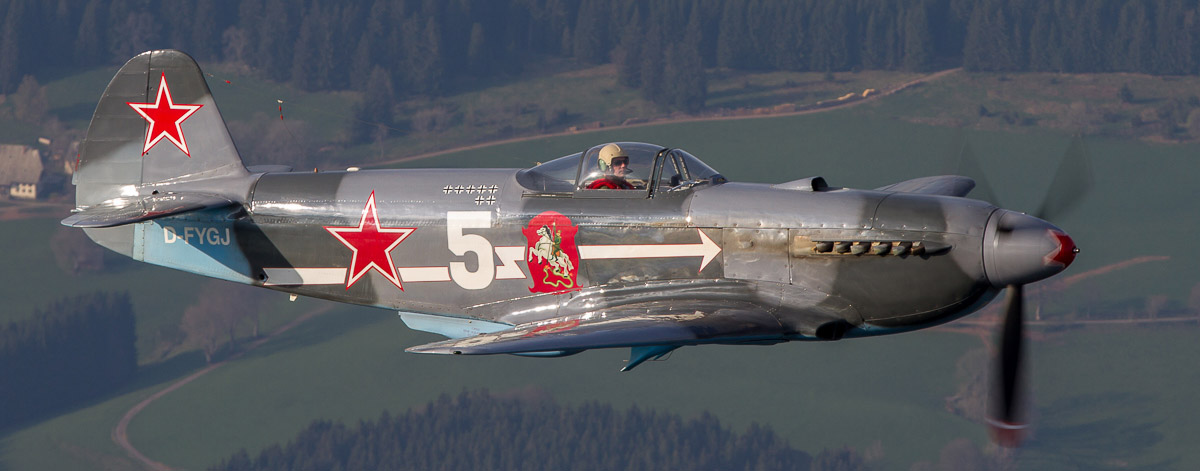 Am 12.04.2014 hatten wir wieder in Bremgarten die Gelegenheit, einige Warbirds Air2Air in ihrer "natürlichen" Umgebung zu fotografieren. Diesmal standen vornehmlich Flugzeuge aus dem Hause Jakowlew auf dem Plan.