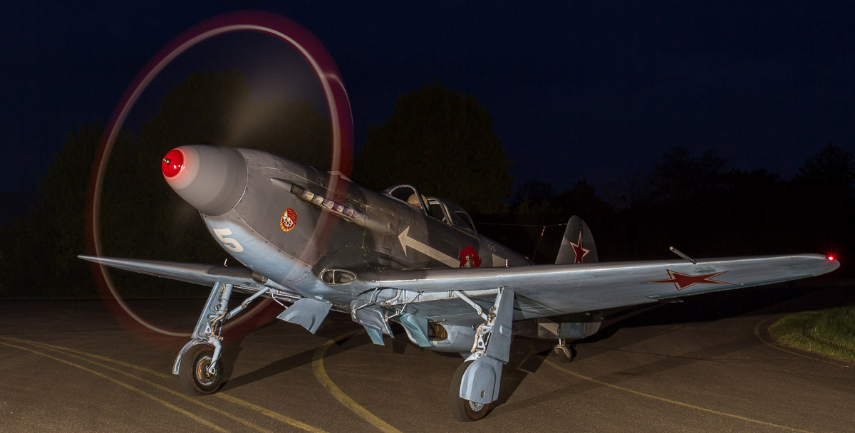Nach der Landung nutzten wir noch die Gelegenheit drei Models, die rein zufällig von der Aero aus Friedrichshafen vorbeikamen, vor interessanten Objekten wie der Tankstelle oder unseren Jaks abzulichten. Nach dem Sonnenuntergang wurden zwei Jaks mit Scheinwerfern beleuchtet und angelassen. Nachdem diese stimmungsvollen Bilder die restlichen Speicherkarten gefüllt hatten, ging ein Spitzentag zu Ende. Vielen Dank an Chris und Reto für die tolle Organisation.