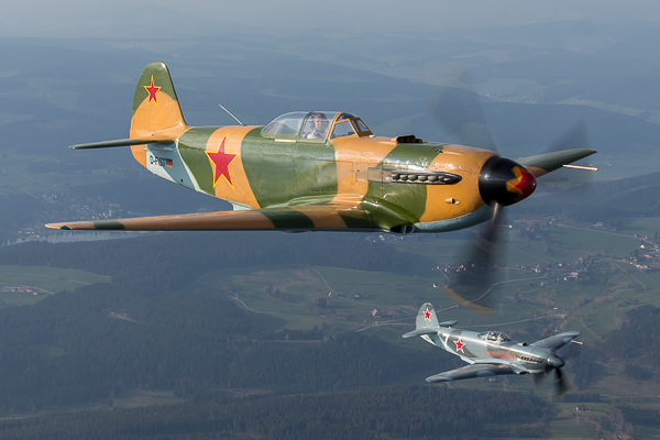 Air2Air und Night-Shooting mit Jak-9, zwei Jak-3, Jak-52, Jak-18T und ChipmunkBremgarten 12.04.2014 (Deutschland)