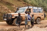 Unser TransportmittelIm Gegensatz zu Europa, wo stets nur die neueste Entwicklung genutzt wird, sind hier die alten Fahrzeuge am beliebtesten. Unser Transportmittel war alter Toyota Landcruiser mit wenig PS und Blattfedern, den unser Fahrer aber gegen kein Geld der Welt gegen ein neues Modell tauschen würde. Er lies uns auch nie im Stich. | |