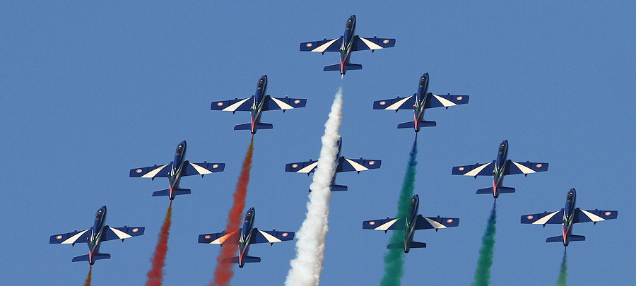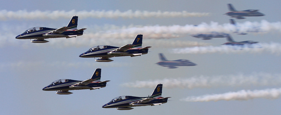 Wenn die Frecce Tricolori zu einem Jubeläum einladen, muss man einfach dabei sein. Die Teilnahme eines Großaufgebots internationaler Teams sind ebenso garantiert, wie Hunderttausende von Besuchern, die mit ihre Emotionen nicht zurückhalten.