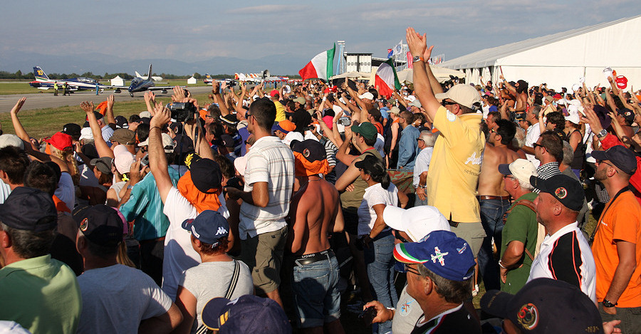 Alles in allem war es wieder eine Spitzenveranstaltung. Spätestens bei der Vorführung der Frecce Tricolori zu den Klängen der Stimme von Luciano Pavarotti waren die italienischen Fans nicht mehr zu halten. Es ist einfach schön zu sehen, wie eng die Bindung zwischen der Frecce Tricolori und ihren Fans ist. Die Zahl der Fanclubs war nicht zu erfassen. Hier sind andere Teams meilenweit entfernt.